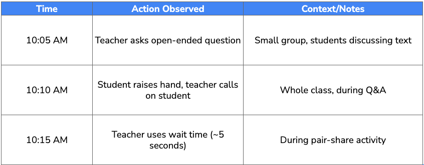 Coach: “I noticed you paused effectively to give students time to think before responding, which encouraged deeper answers, great job.”