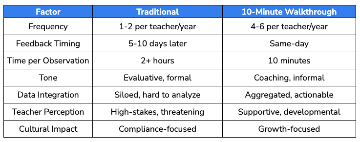 It’s not just a shorter observation. It’s a fundamentally different approach that prioritizes actionable coaching over compliance.