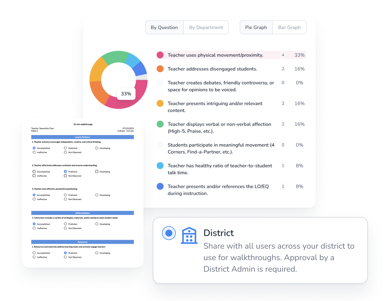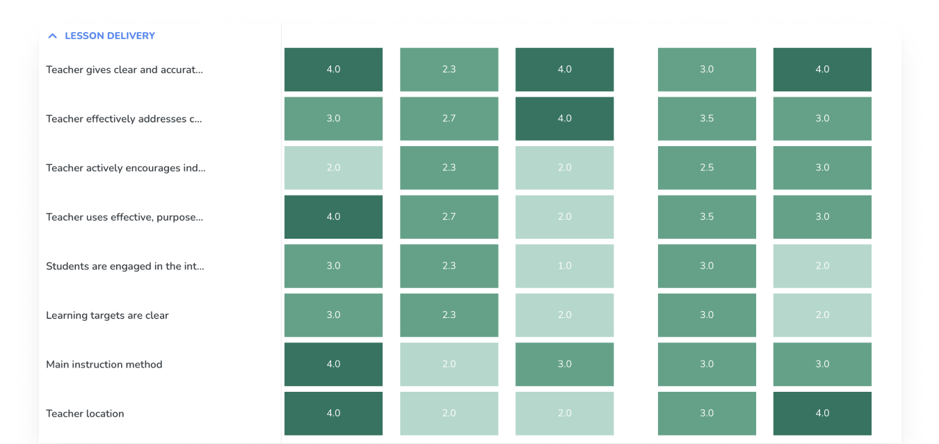 Track every walkthrough and rubric score in one dashboard and ensure consistent practice across campuses